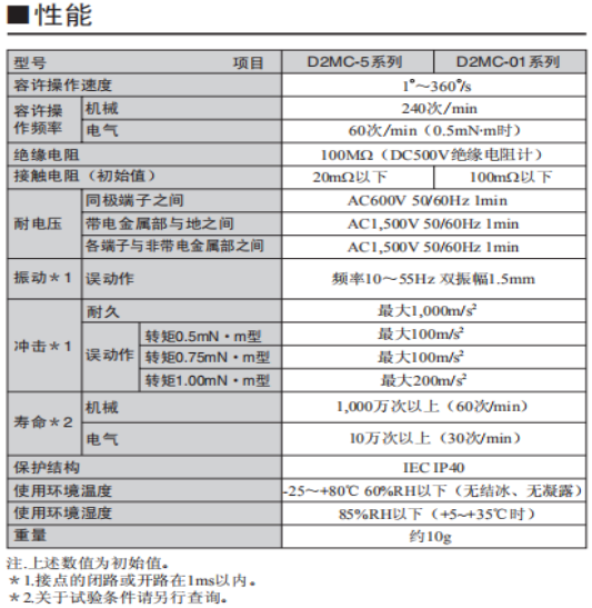 下面我們來看看OMRON歐姆龍這款微動開關高可靠性產品的性能: