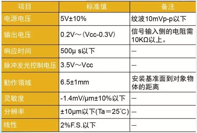 ? 標準檢測距離(動作范圍)=6.5±1mm