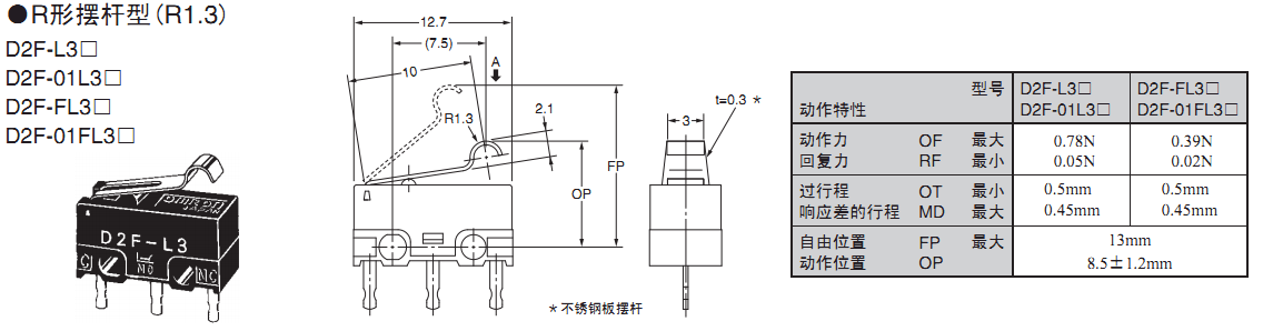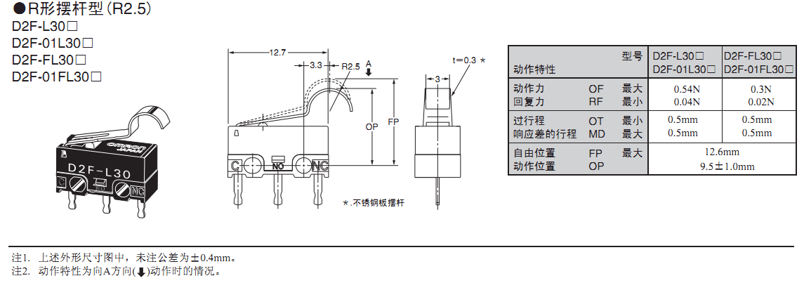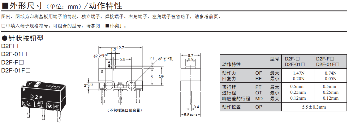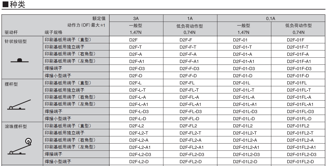 歐姆龍微動開關,D2F,歐姆龍微動開關D2F