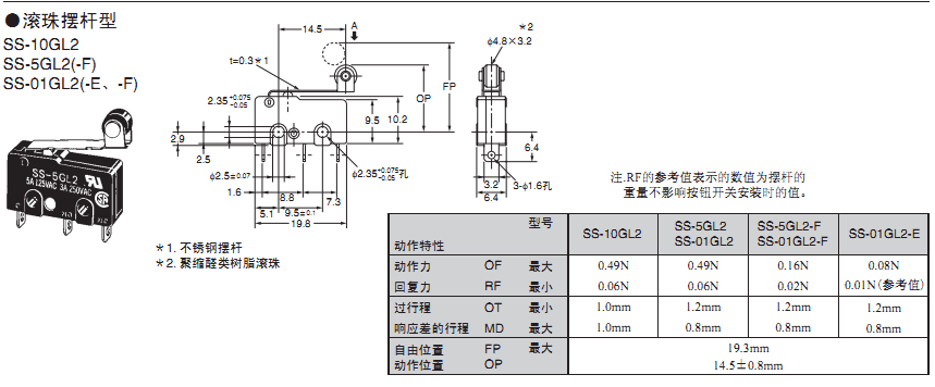歐姆龍微動開關,SS-01GL2-E,歐姆龍微動開關SS