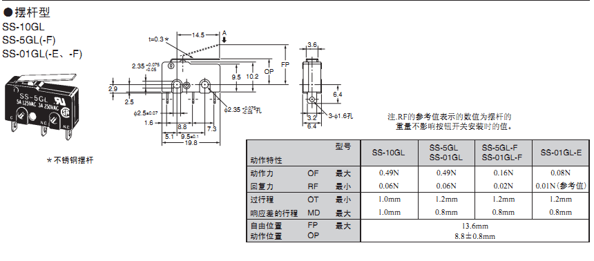 歐姆龍微動開關,SS-5GL,歐姆龍微動開關SS