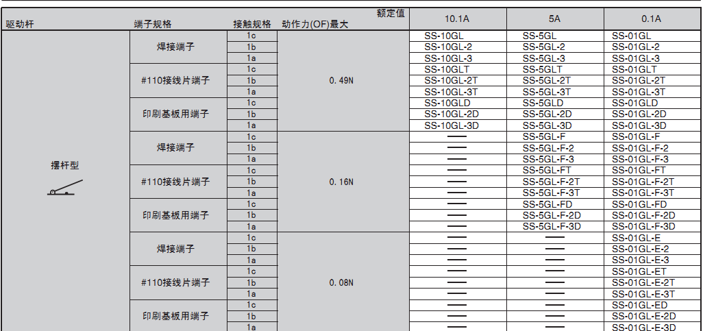 備有0.1A~10.1A型的各個品種,產品規格齊全,是歐姆龍暢銷的微動開關。