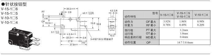 歐姆龍微動開關,V-15-1A5,歐姆龍微動開關V-15
