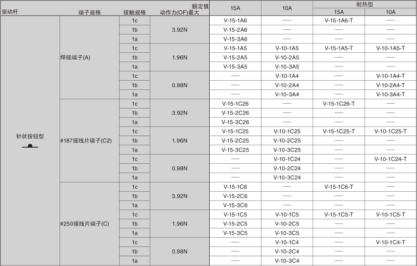 歐姆龍微動開關,V-15-3A6,歐姆龍微動開關V-15