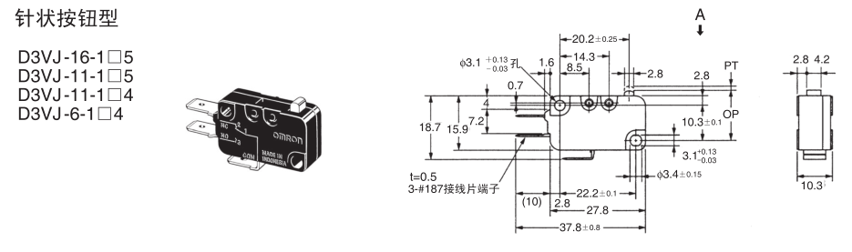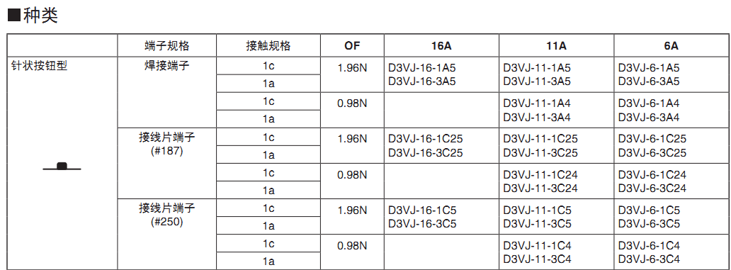 歐姆龍微動開關, D3VJ-16-1A5,歐姆龍微動開關D3VJ