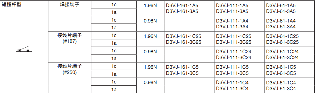 歐姆龍微動開關, D3VJ-111-1A5,歐姆龍微動開關D3VJ