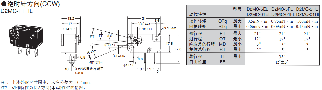 歐姆龍微動開關,D2MC-01EL,歐姆龍微動開關D2MC