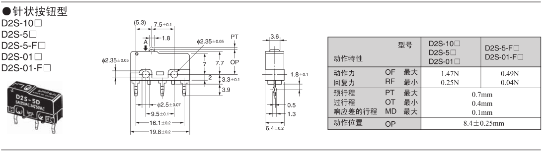 歐姆龍微動開關(guān), D2S-10,歐姆龍微動開關(guān)D2S