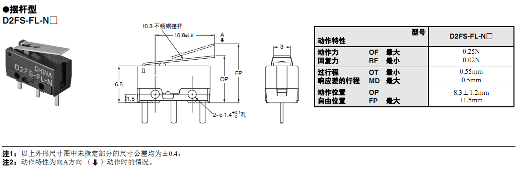 歐姆龍微動開關, D2FS-FL-N,歐姆龍微動開關D2FS