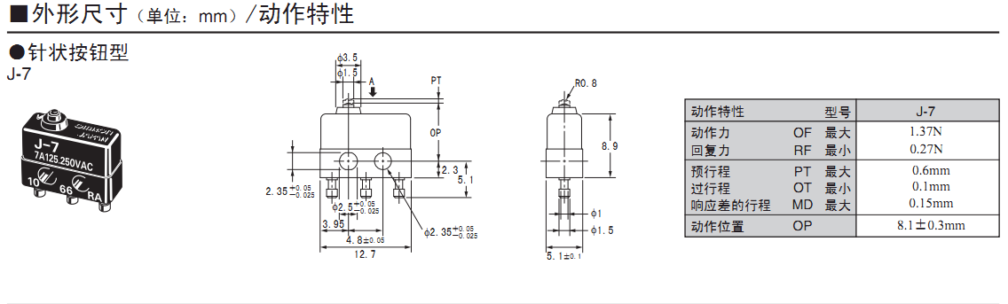 歐姆龍微動開關(guān),J-7,歐姆龍微動開關(guān)J