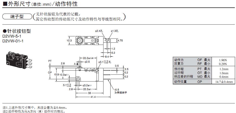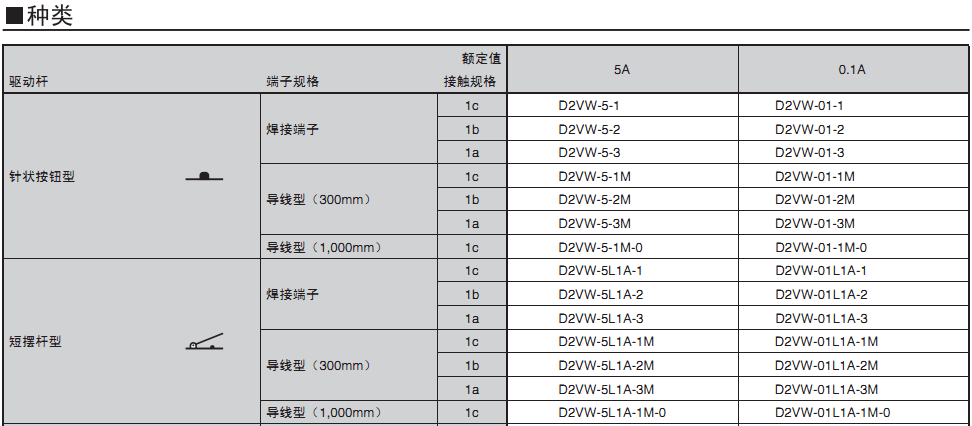 歐姆龍微動開關, D2VW-5-1,歐姆龍微動開關D2VW