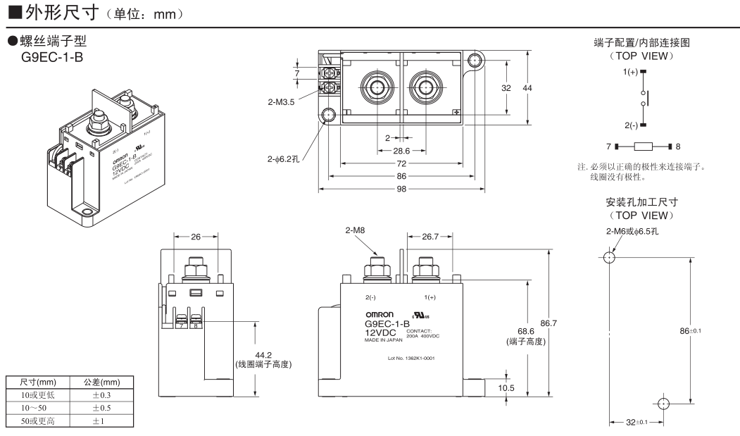高86.7mm×寬44mm×長98mm的小型繼電器,可以開關(guān)DC400V 200A。(最大可切斷DC400V 1,000A)