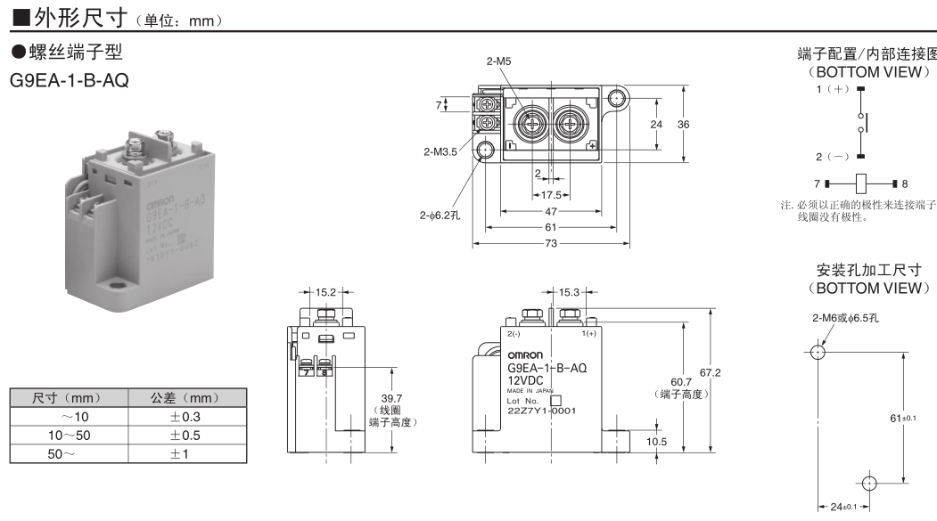高67.2mm×寬36mm×長(zhǎng)73mm的小型繼電器,可以開關(guān)DC400V 60A。(最大可切斷DC300V 600A)