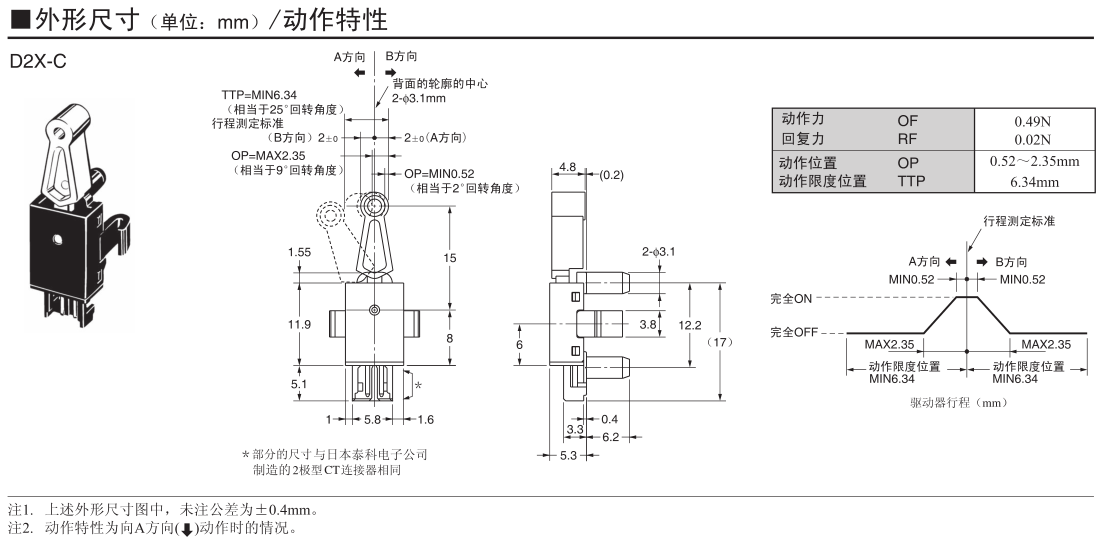 歐姆龍檢測開關,D2X-C,歐姆龍檢測開關D2X