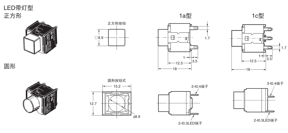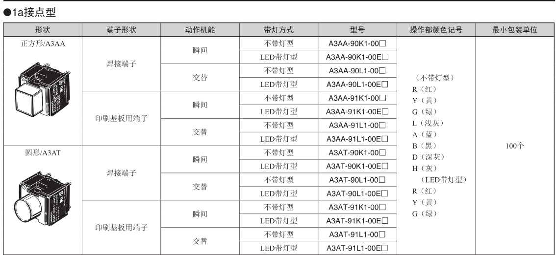 歐姆龍按鈕開關, A3AA-90K1-00R,歐姆龍按鈕開關A3A
