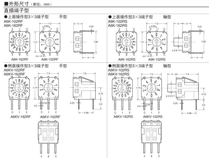 具有表面安裝端子、直插型端子的兩種型號對應。還提供側面操作型產品