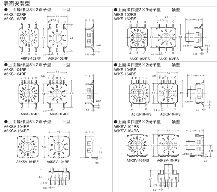具有表面安裝端子、直插型端子的兩種型號對應。還提供側面操作型產品