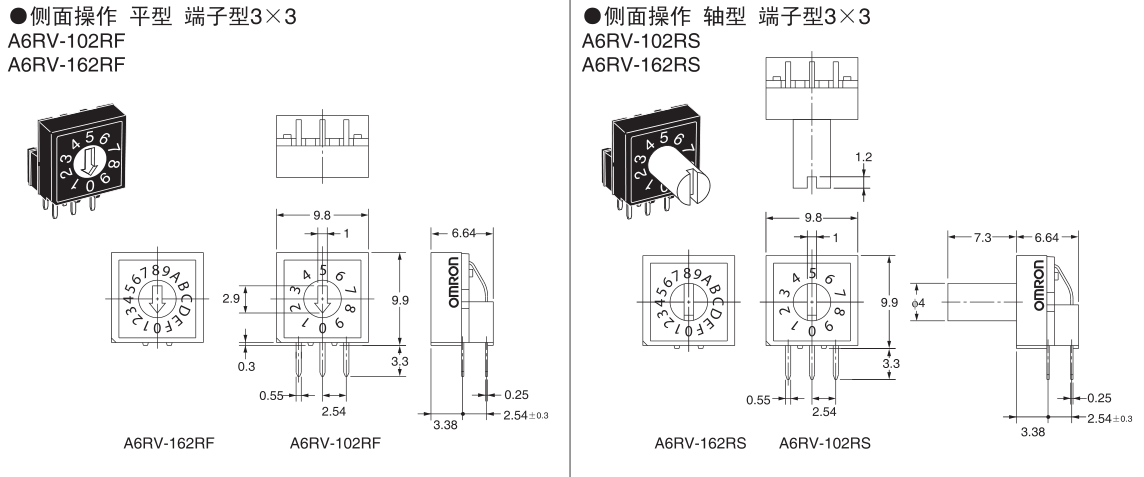 上面操作型、側面操作型、平型、軸型等各種產品。