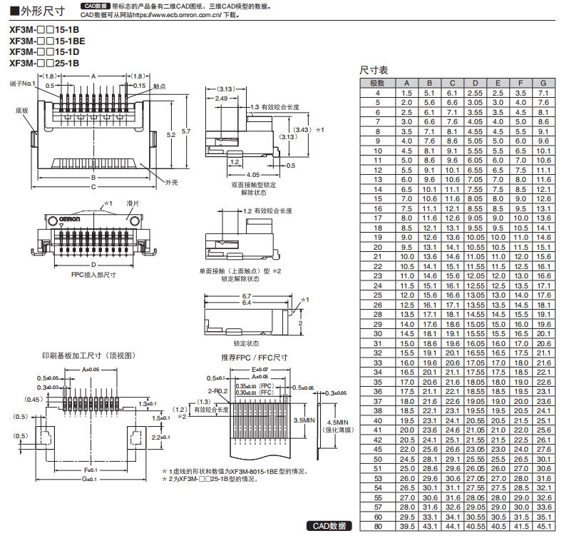 接點構(gòu)造備有雙面觸點型和上觸點型兩種。 (上接點型只有0.5mm間距)