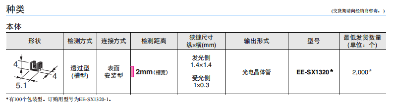 槽型光電開(kāi)關(guān)EE-SX1320(槽寬:2mm)