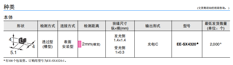 歐姆龍超小型槽型·SMD型(槽寬:2mm)