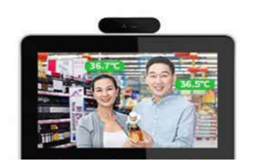 在大屏上安裝熱成像雙光測溫模塊,直接實現廣告播放及多人測溫。有人時測溫,無人時播放廣告。