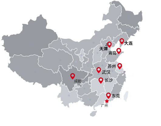 國內設有多地辦事處:廣州、東莞、長沙、成都、蘇州、武漢、青島、大連、天津